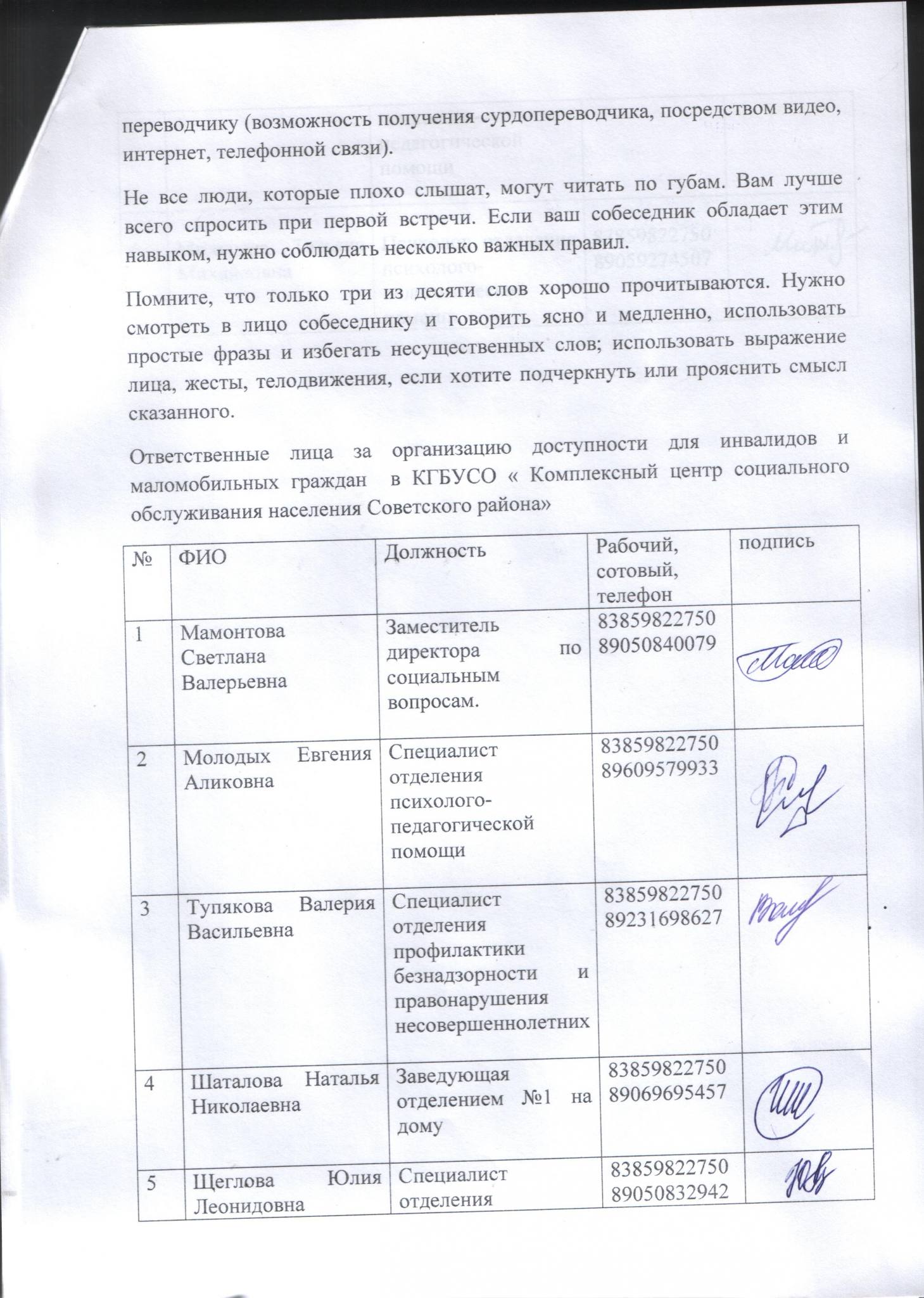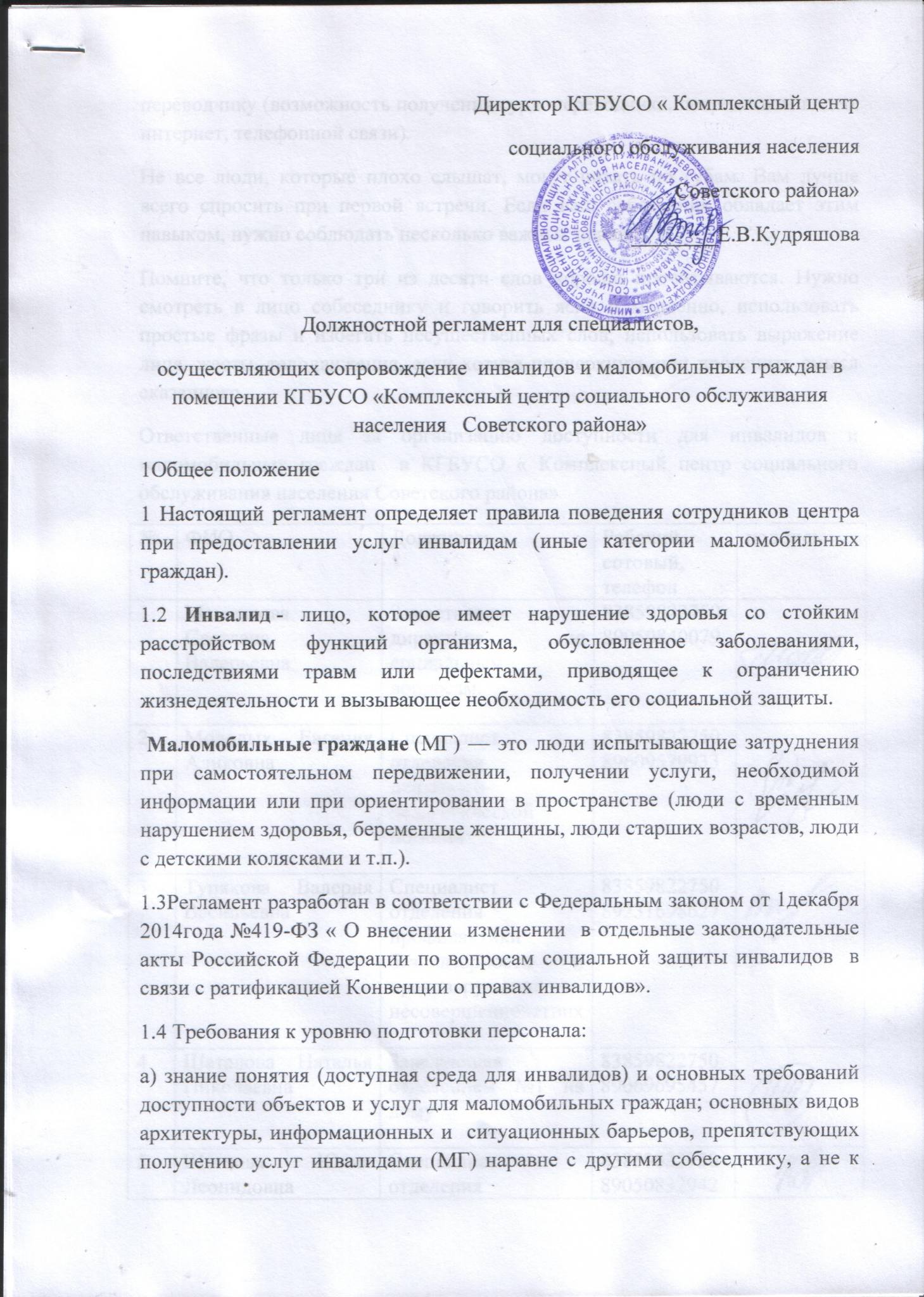 Должностной регламент для специалистов, осуществляющих сопровождение инвалидов и маломобильных граждан в помещениях КГБУСО "КЦСОН Советского района"